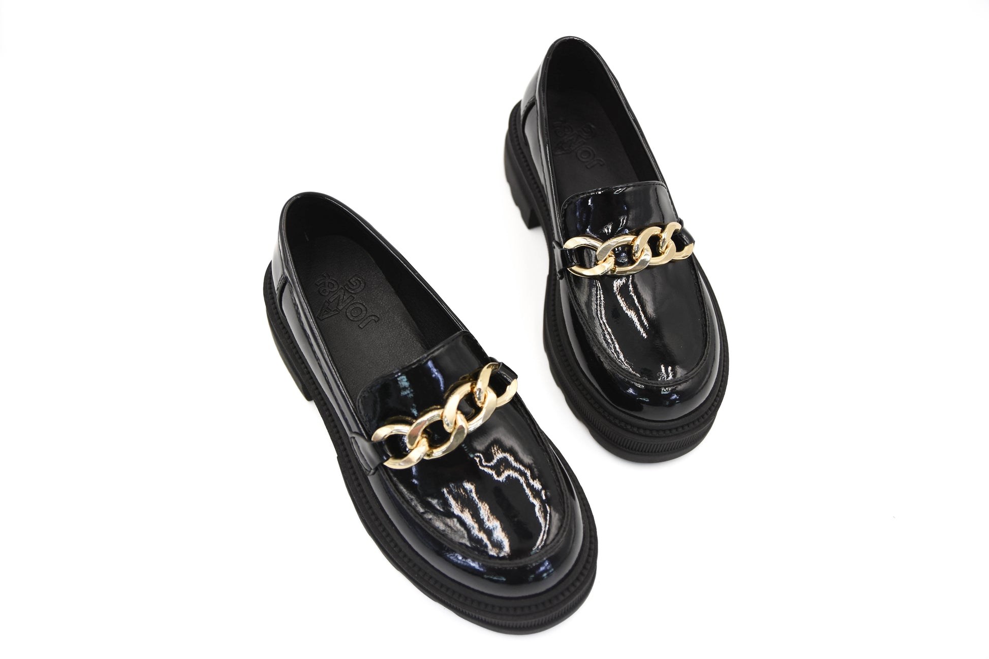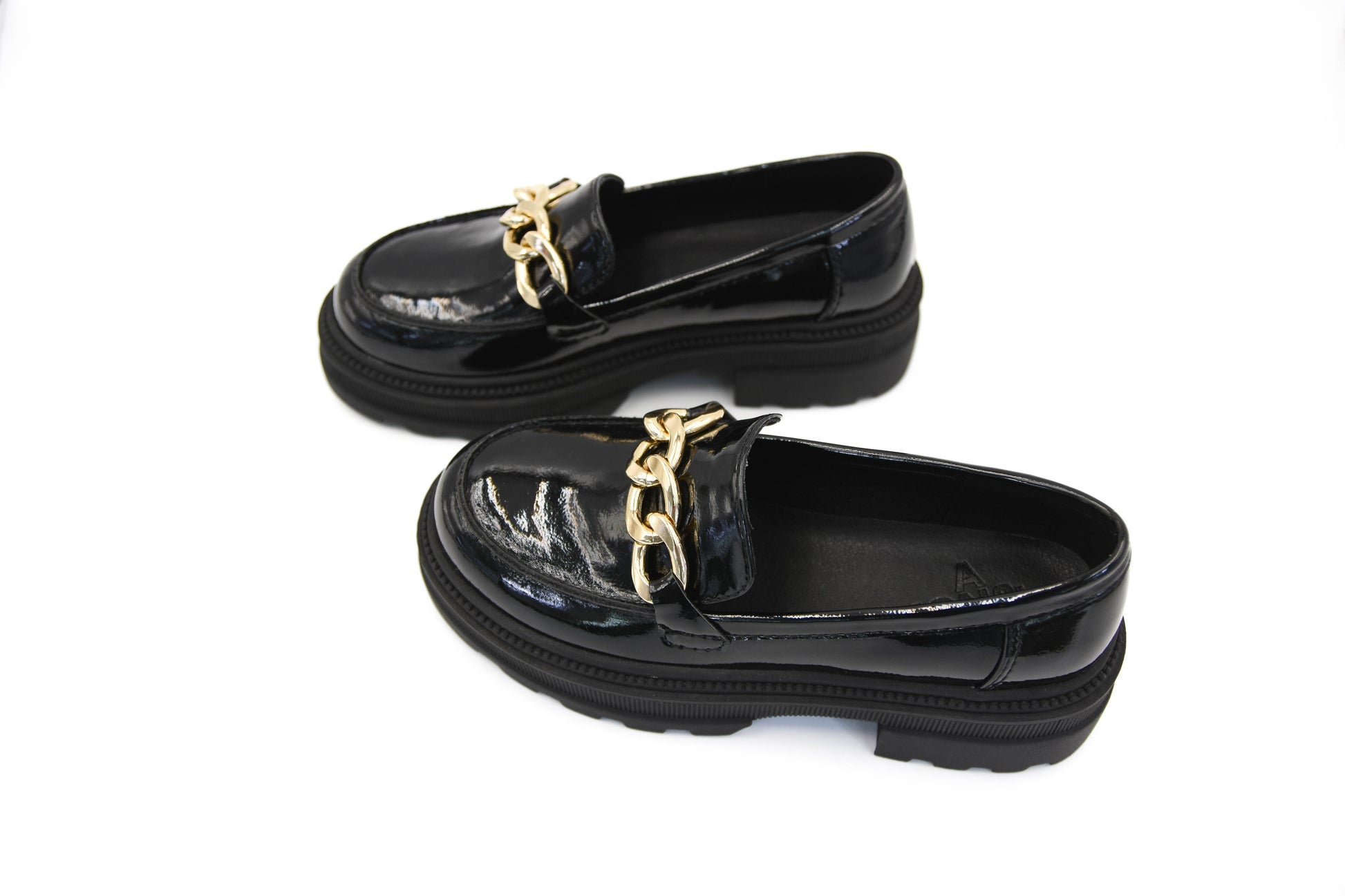 Alison Black Patent 鏈條厚底樂福鞋(鏡黑)